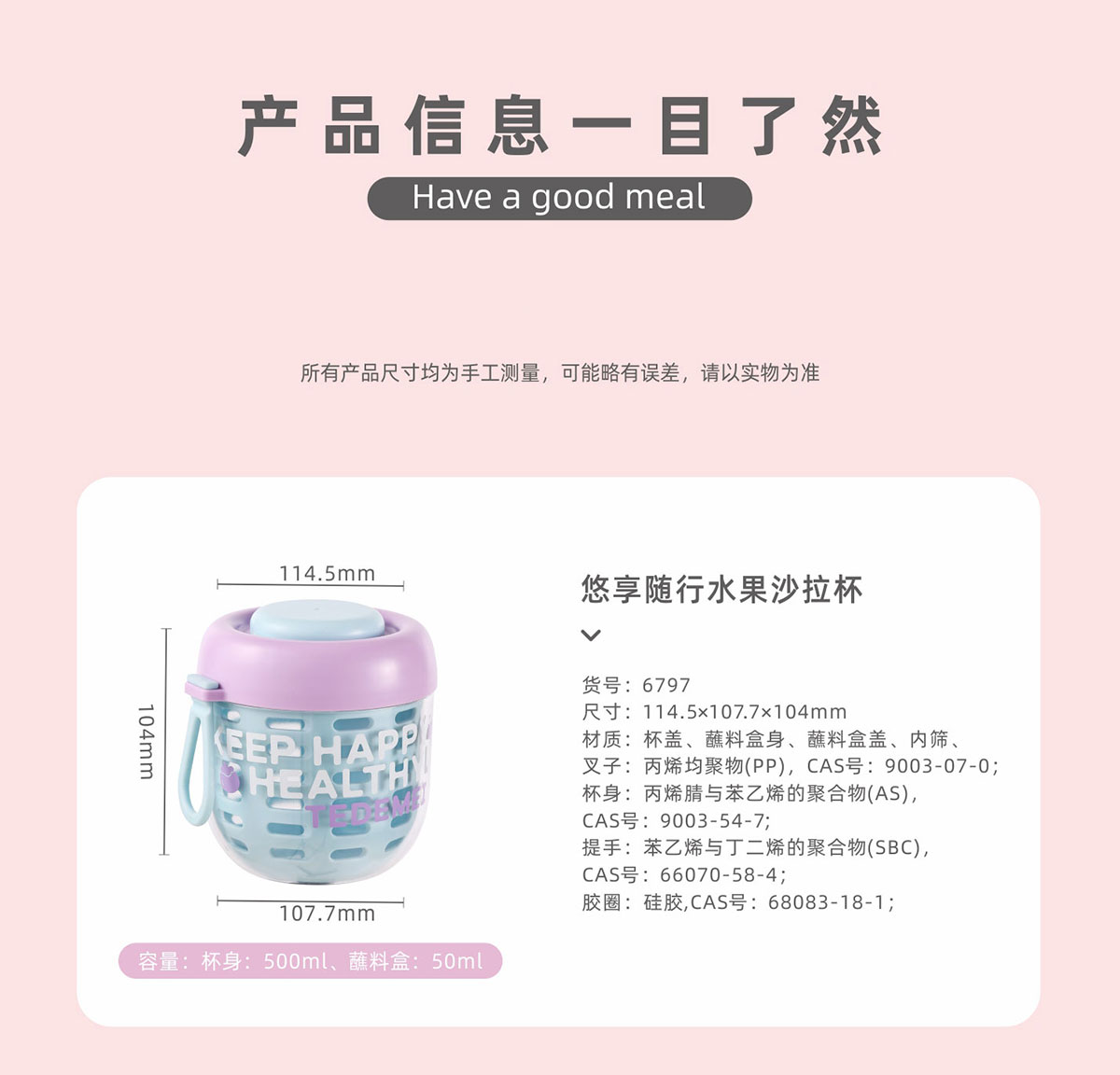 Size: 115*108*104mm/500ml 蘸料盒:50ml